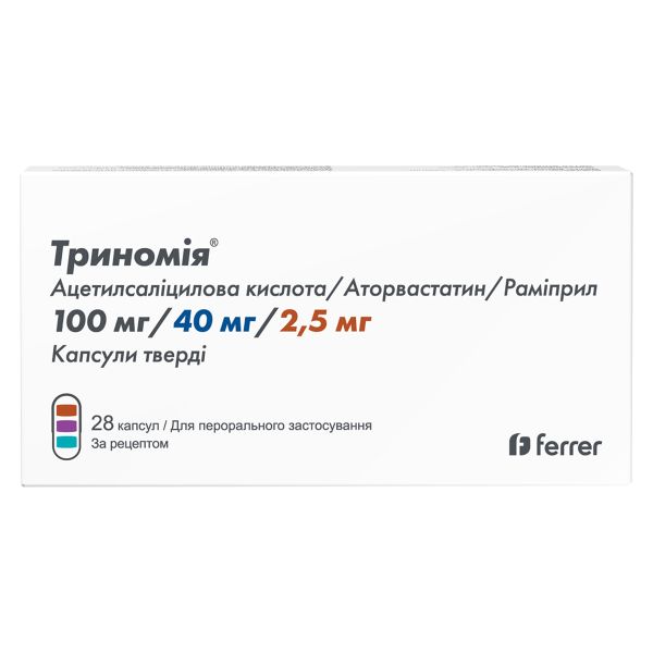 Триномия капсулы твердые 100 мг + 20 мг + 5 мг блистер №28Ferrer Internacionalв наличии в 158 аптеках